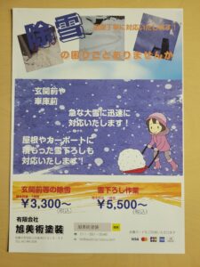 (有)旭美術塗装では除雪の契約の申し込みもお受けいたします。